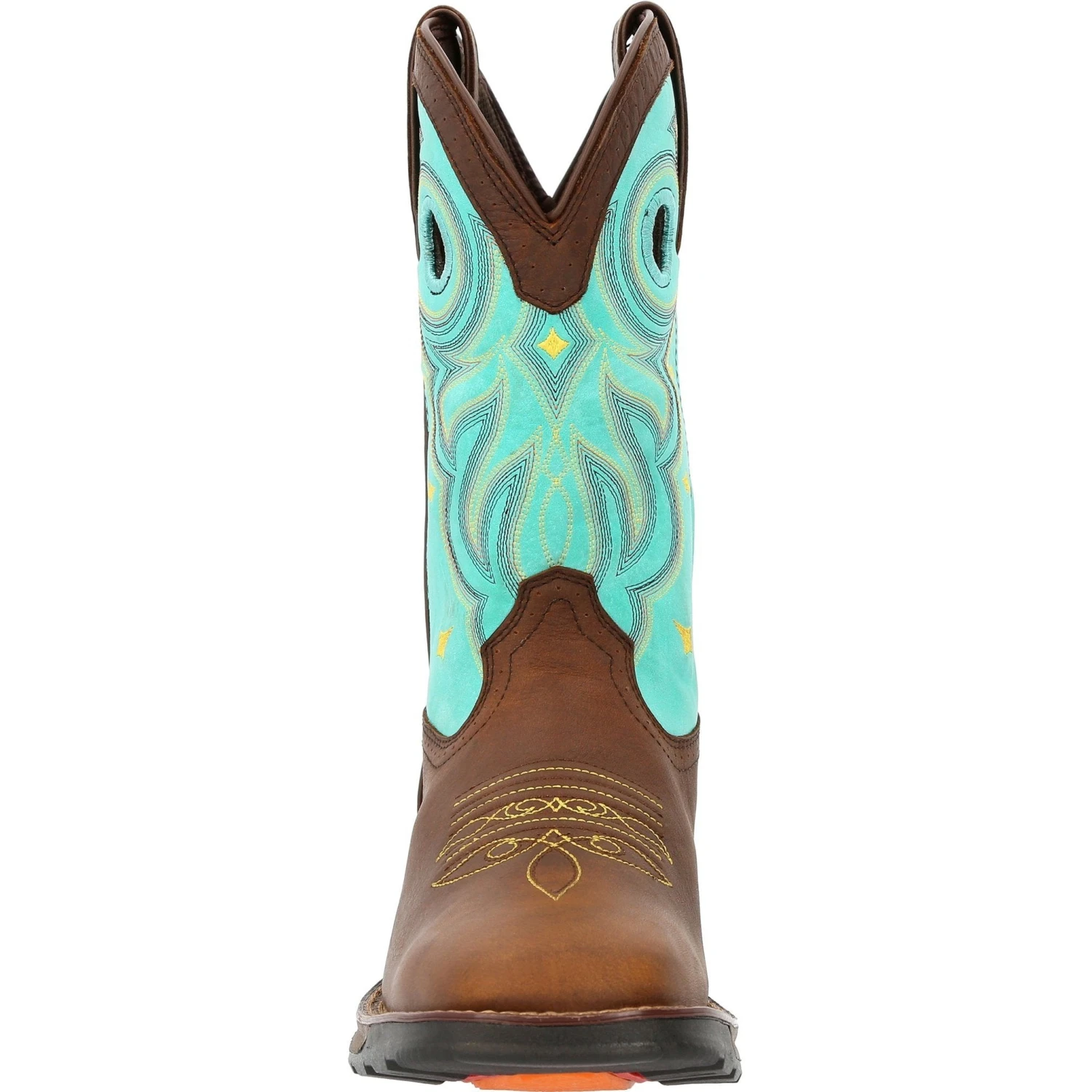 Durango Women’s Maverick 10″ Soft Toe Waterproof Pull-On Western Work Boot – Peanut Brown/Electric Blue – DRD0419