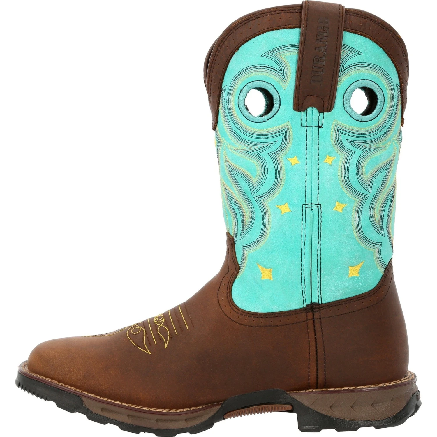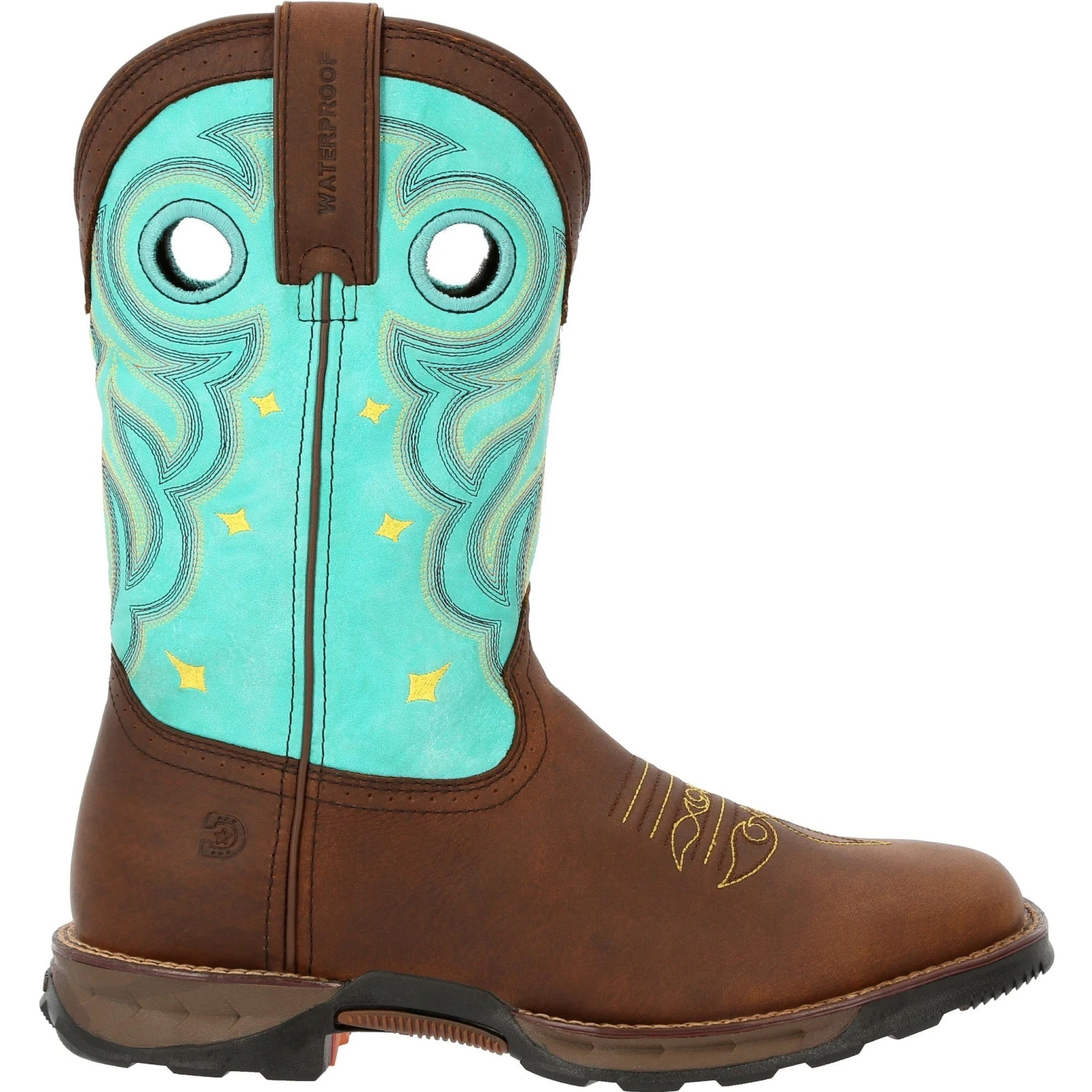 This is the women’s 10″ Western Waterproof Peanut Brown/Electric Blue Durango® Maverick™.